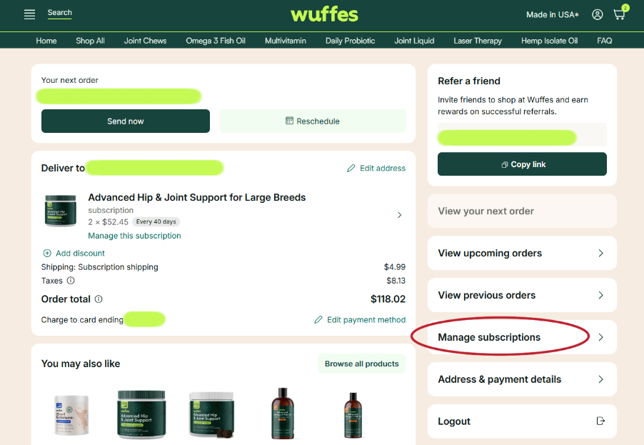 2. Click on "Manage subscriptions" to see all your active subscriptions